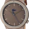 This watch comes with a khaki ion-plated stainless steel case, khaki dial with printed index, and a brown leather strap